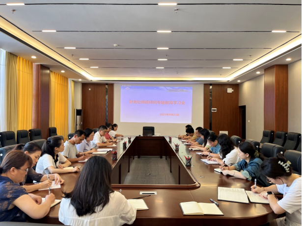 9月22日下午,财务处在实训楼1509会议室召开师德师风专题教育学习会,处长覃宏倩,副处长张玉秋、刘玲,以及全体人员参会。会议由综合科负责人王华主持。